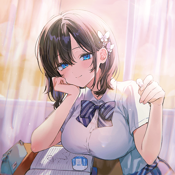 清楚な生徒会長キャラクターで制服の青と白がイメージカラーとなっています。